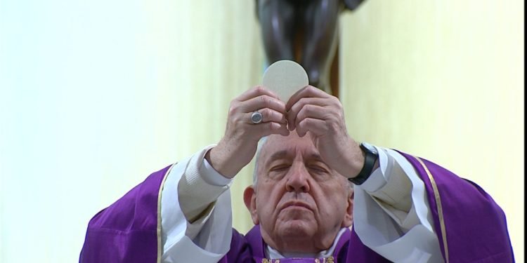 വൈദിക വൃത്തിയിലുള്ളവർ പുറത്തു പോകാൻ ധൈര്യം കാണിക്കണം, രോഗികളുടെ അടുത്തേക്ക് കടന്നു ചെല്ലണം പാപ്പാ പറഞ്ഞു. ഇന്നലെ പാപ്പയുടെ പ്രാർത്ഥനാ ചടങ്ങുകൾ ലൈവ് സ്ട്രീം ചെയ്തിരുന്നു. കോവിഡ് 19 ജാഗ്രതാ നിർദേശത്തിന്റെ പശ്ചാത്തലത്തിൽ 83 കാരനായ പാപ്പാ പൊതുചടങ്ങുകളിൽ ഉപേക്ഷിച്ചിരിക്കുകയാണ്. ഔദ്യോഗിക വസതിക്ക് സമീപമുള്ള സന്തമാർത്താ കപ്പേളയിലാണ് അദ്ദേഹം പ്രത്യേകമായി വിശുദ്ധ കുർബാന അർപ്പിക്കുന്നത്.