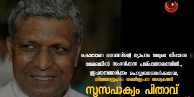 കൊറോണ വൈറസിന്റെ വ്യാപനം നമ്മുടെ തീരദേശ മേഖലയിൽ പരക്കുന്ന പശ്ചാത്തലത്തിൽ., രൂപതാംഗങ്ങൾക്കും പൊതുജനങ്ങൾക്കുമായി, തിരുവനന്തുപുരം അതിരൂപത അധ്യക്ഷൻ സൂസപാക്യം പിതാവ് നൽകുന്ന സന്ദേശം