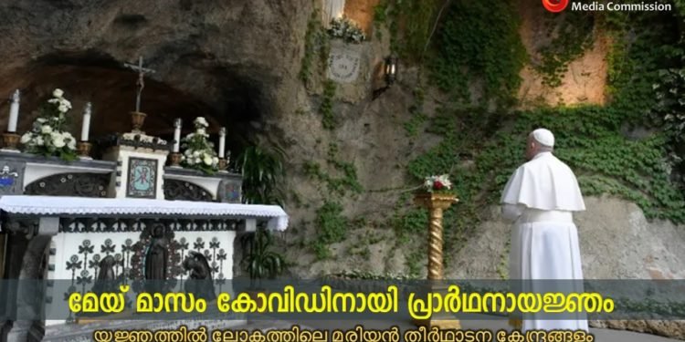 കോവിഡ്-19 പകർച്ചവ്യാധിയുടെ ശമനത്തിനായി മെയ് മാസം മുഴുവൻ പ്രാർത്ഥന മാസമായി ആചരിക്കാൻ ആഹ്വാനം ചെയ്ത് ഫ്രാൻസിസ് പാപ്പ. മരിയൻ വണക്കമാസത്തിൽ നടത്തുന്ന ഈ പ്രാർഥനായജ്ഞത്തിലേക്ക് ലോകമെമ്പാടുമുള്ള കത്തോലിക്കരെയും പ്രത്യേകമായി മരിയൻ തീർഥാടന കേന്ദ്രങ്ങളെയും പങ്കെടുക്കാൻ പാപ്പ ക്ഷണിക്കുകയും ചെയ്തു.