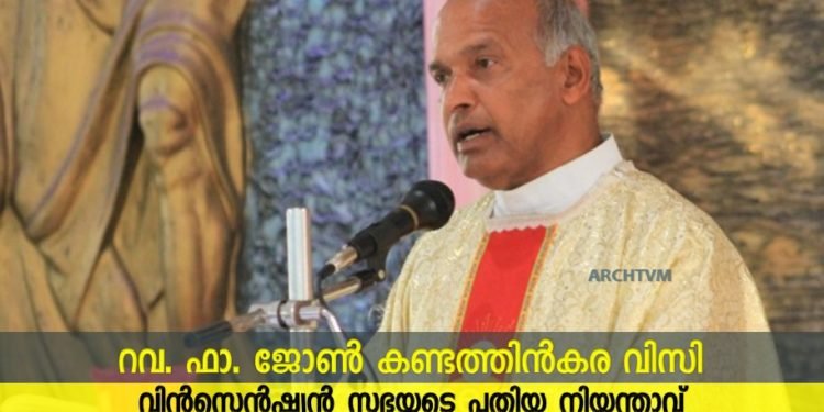 അരുണാചൽ പ്രദേശിൽ മിഷനറിയായി പ്രവർത്തിക്കുന്ന റവ. ഫാ. ജോൺ കണ്ടത്തിൻകരയെ വിൻസെൻഷ്യൻ സഭയുടെ പുതിയ സുപ്പീരിയർ ജനറലായി തിരഞ്ഞെടുത്തു. എറണാകുളം ഇടപ്പള്ളിയിലെ സഭയുടെ ജനറലേറ്റിൽ നടന്ന സമ്മേളനത്തിലാണ് 66കാരനായ ഫാ. ജോണിനെ പുതിയ നിയോഗം തേടിയെത്തിയത്.