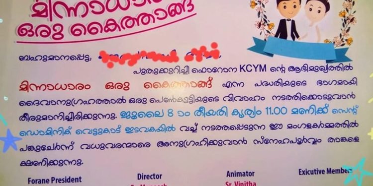 ഒരു പെൺകുട്ടിക്ക് ഒന്നര ലക്ഷം രൂപയുടെ സ്വർണം വാങ്ങി നൽകി, ജൂലൈ മാസം എട്ടാം തീയതി നടന്ന മറ്റൊരു വിവാഹത്തിലെ പെൺകുട്ടിക്ക് സ്വർണം, വിവാഹത്തിന് വേണ്ടുന്ന ഭക്ഷണം, ദൈവാലയ അലങ്കാരങ്ങൾ എന്നീ കാര്യങ്ങളും യുവജനങ്ങൾ ഏറ്റെടുത്ത് നടത്തി.