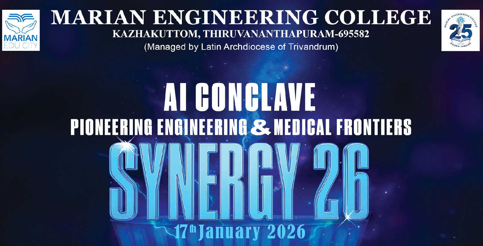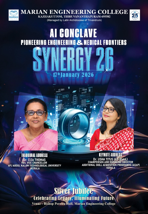 തിരുവനന്തപുരം: കഴക്കൂട്ടം മരിയൻ എഞ്ചിനീയറിംഗ് കോളേജിന്റെ രജതജൂബിലി ആഘോഷങ്ങളുടെ ഭാഗമായി എഞ്ചിനീയറിംഗ്-മെഡിക്കൽ മേഖലകളിലെ നിർമ്മിത ബുദ്ധിയുടെ (AI) സാധ്യതകൾ ചർച്ച ചെയ്യുന്നതിനായി ‘സിനർജി 26’ (SYNERGY 26) എന്ന പേരിൽ എഐ കോൺക്ലേവ് സംഘടിപ്പിക്കുന്നു. ജനുവരി 17 ശനിയാഴ്ച കോളേജിലെ ബിഷപ്പ് പെരേര ഹാളിൽ നടക്കുന്ന പരിപാടി ഡോ. സിസ തോമസ് (എപിജെ അബ്ദുൽ കലാം സാങ്കേതിക സർവ്വകലാശാല വൈസ് ചാൻസലർ) കോൺക്ലേവ് ഉദ്ഘാടനം ചെയ്യും. അഡീഷണൽ സ്കിൽ അക്വിസിഷൻ പ്രോഗ്രാം (ASAP) ചെയർപേഴ്സൺ ആൻഡ് മാനേജിംഗ് ഡയറക്ടർ ഡോ. ഉഷ ടൈറ്റസ് IAS (റിട്ട.) മുഖ്യപ്രഭാഷണം നടത്തും.