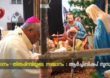 ✍️ പ്രേം ബോനവഞ്ചർ തിരുപ്പിറവിയിലൂടെ യേശു മനുഷ്യകുലത്തിനു, പ്രത്യേകിച്ച്, സന്മനസ്സുള്ള എല്ലാവർക്കും നൽകിക്കൊണ്ടിരിക്കുന്ന വലിയ സമ്മാനം സമാധാനമാണെന്ന് തിരുവനന്തപുരം ലത്തീൻ അതിരൂപത ആർച്ച്ബിഷപ് സൂസപാക്യം. ബെത്ലഹേമിലെ തിരുപ്പിറവിയെ...
