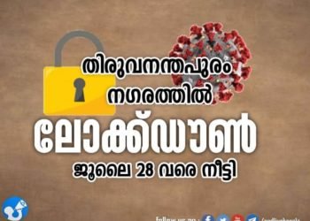 തിരുവനന്തപുരം കോര്പ്പറേഷന് പരിധിയില് ജൂലൈ 28 അര്ദ്ധരാത്രിവരെ ലോക്ക് ഡൗണ് നീട്ടിയതായി ജില്ലാ കളക്ടര് ഡോ. നവജ്യോത് ഖോസ അറിയിച്ചു. ക്രിട്ടിക്കല് കണ്ടെയിന്മെന്റ് സോണുകള് ഒഴികെയുള്ള തിരുവനന്തപുരം...