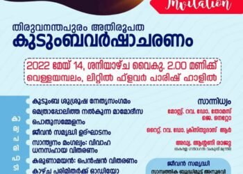 Read moreDetailsതിരുവനന്തപുരം അതിരൂപത കുടുംബപ്രേക്ഷിത ശുശ്രൂഷ സമിതിയുടെ നേതൃത്വത്തിൽ കുടുംബവർഷാചരണം മെയ് 14 ശനിയാഴ്ച 2:00 മണിക്ക് വെള്ളയമ്പലം, ലിറ്റിൽ ഫ്ലവർ പാരിഷ് ഹാളിൽ വച്ച് നടക്കും.ഈ പരിപാടിയിൽ...