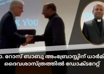 Read moreDetailsഫാ. റോസ് ബാബു അംബ്രോസ് റോമിലെ അക്കാദമിയ അൽഫോൻസിയാന പൊന്തിഫിക്കൽ യൂണിവേഴ്സിറ്റിയിൽ നിന്ന് ധാർമിക ദൈവശാസ്ത്രത്തിൽ ഡോക്ടറേറ്റ് കരസ്തമാക്കി. "പരിസ്ഥിതി ശാസ്ത്രവും അനുകമ്പയും: 'ലൗദാത്തോ സീ' യും...