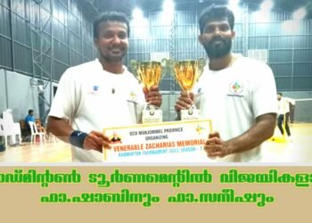 Read moreDetailsമഞ്ഞുമൽ പ്രൊവിൻസിലെ ഒ സി ഡി വൈദികരുടെ നേതൃത്വത്തിൽ നടന്ന സക്കറിയ മെമ്മോറിയൽ ബാഡ്മിന്റൺ ടൂർണമെന്റിൽ മൂന്നാം സ്ഥാനം കരസ്ഥമാക്കി തിരുവനന്തപുരം അതിരൂപതയിലെ റവ. ഫാ. ഷാബിനും...