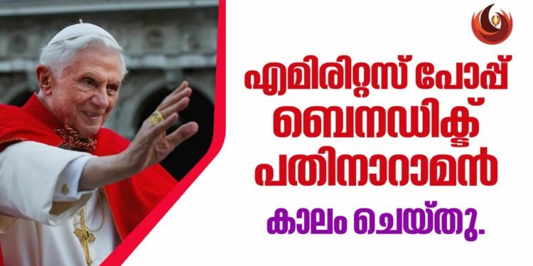 ആഗോള കത്തോലിക്കാ സഭയെ വിശ്വാസത്തിന്റെ ധീര പോരാളിയായി നയിച്ച ബെനഡിക്ട് പതിനാറാമൻ പാപ്പ വിടവാങ്ങി. വി. ജോൺപോൾ രണ്ടാമൻ പാപ്പയുടെ പിൻഗാമിയായി 2005 മുതൽ 2013 വരെ കത്തോലിക്കാ സഭയുടെ പരമാധ്യക്ഷനായിരുന്നു ബനഡിക്ട് പതിനാറാമൻ പാപ്പ. 2013 ഫെബ്രുവരി 28ന് വാർദ്ധക്യസഹജമായ കാരണങ്ങളാൽ തൽസ്ഥാനത്തുനിന്നും രാജിവച്ചിരുന്നു. കുറച്ചു ദിവസങ്ങളായി രോഗാവസ്ഥയാൽ ബുദ്ധിമുട്ട് അനുഭവിച്ചുകൊണ്ടിരുന്ന അദ്ദേഹത്തിനായി പ്രാർത്ഥിക്കണമെന്ന് ഫ്രാൻസിസ് പാപ്പാ കഴിഞ്ഞ ദിവസം എല്ലാവരോടും അഭ്യർത്ഥിച്ചിരുന്നു.