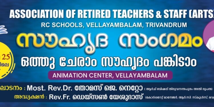 അതിരൂപത വിദ്യാഭ്യാസ ശുശ്രൂഷ സമിതി, ആർ.സി സ്കൂൾസിന്റെ ആഭിമുഖ്യത്തിൽ വിരമിച്ച ആർ. സി. സ്കൂളിലെ അദ്ധ്യാപകർക്കായി അസോസിയേഷൻ ഓഫ് റിട്ടയേർഡ് ടീച്ചേർസ് & സ്റ്റാഫ് (എ.ആർ.ടി.എസ്) എന്ന പേരിൽ സൗഹൃദ കൂട്ടായ്മ ഒരുങ്ങുന്നു. ഒത്തു ചേരാം സൗഹൃദം പങ്കിടാം എന്ന് പേര് നൽകിയിരിക്കുന്ന സൗഹൃദ കൂട്ടായ്മ 2023 ഫെബ്രുവരി 25 – ന് രാവിലെ വെള്ളയമ്പലം, അനിമേഷൻ സെന്ററിൽ വച്ച് നടക്കും.