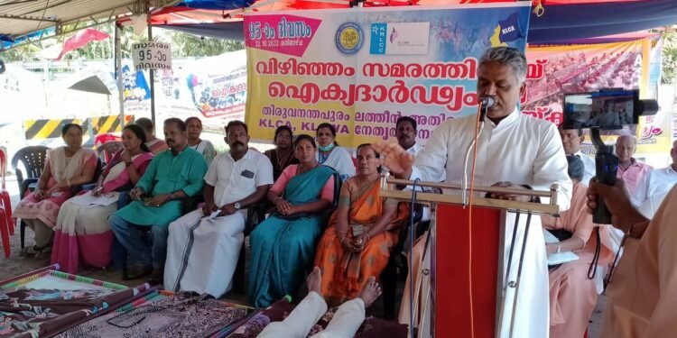 മത്സ്യത്തൊഴിലാളികളുടെ അതിജീവന സമരം 95 ദിവസങ്ങൾ പിന്നിടുന്നു. സമരമുഖത്ത് ആവേശ പ്രതിഷേധം നയിച്ച് അൽമായ സംഘടനകൾ കെ. എൽ.സി. എ., കെ. എൽ.സി.ഡബ്ള്യൂ. എ. തുടങ്ങിയ അൽമായ സംഘടനകളാണ് ഇന്നത്തെ സമരത്തിന് നേതൃത്വം നൽകിയത്. ഇന്നത്തെ സമരത്തിന് അതിരൂപത അൽമായ ശുശ്രൂഷ സമിതി ഡയറക്ടർ ഫാ.മൈക്കിൾ തോമസ് ഉത്ഘാടകനായി.വിഴിഞ്ഞം സമരം 95 ദിവസങ്ങൾ പിന്നിടുമ്പോൾ സമരത്തിന്റെ ആവശ്യങ്ങൾ ചർച്ചയിലൂടെ നടത്തിത്തരാൻ സർക്കാർ ശ്രമിക്കുന്നില്ലെന്നും, മുഖ്യമന്ത്രി കഴിഞ്ഞദിവസം ആറ് ആവശ്യങ്ങളിൽ തീരുമാനമായി എന്ന് പറയുമ്പോൾ ഏതു കാര്യങ്ങളിലൊക്കെ എന്തൊക്കെ തീരുമാനമാണ് ആയത് എന്ന് പറയാൻ മുഖ്യമന്ത്രിയ്ക്ക് ബാധ്യതയുണ്ടെന്നും അദ്ദേഹം പറഞ്ഞു. ചില മന്ത്രിമാരുടെ ഭാഗത്ത് നിന്ന് സമരത്തിന്റെ വീര്യം ഇല്ലാതാക്കുന്നതിന് വേണ്ടി വ്യാജ പ്രചരണങ്ങൾ അഴിച്ചു വിടുന്നെങ്കിലും, സമരത്തിന്റെ ഐക്യം ആർക്കും തകർക്കാൻ സാധിക്കില്ലയെന്നും ഫാ.മൈക്കിൾ തോമസ് പറഞ്ഞു. KLCA തിരുവനന്തപുരം ലത്തീൻ അതിരൂപത പ്രസിഡന്റ് പാടിക് മൈക്കിൾ അദ്ധ്യക്ഷനായി. KLCWA തിരുവന്തപുരം ലത്തീൻ അതിരൂപത പ്രസിഡന്റ് ഷേർളി ജോണി, അതിരൂപതാ എക്സിക്യൂട്ടീവ് അംഗങ്ങൾ, ഫെറോനാ ഭാരവാഹികൾ, ഇടവക പ്രതിനിധികൾ എന്നിവർ പങ്കെടുത്തു.