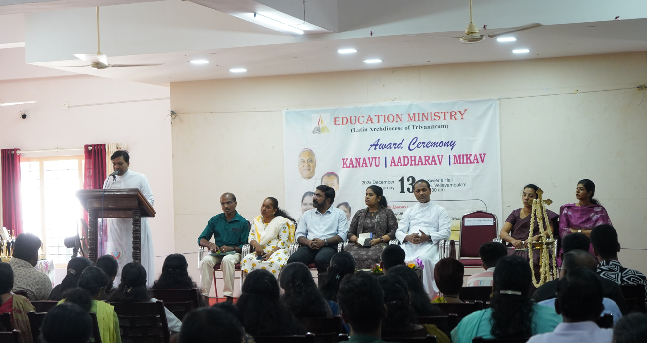 വെള്ളയമ്പലം: തിരുവനന്തപുരം അതിരൂപത വിദ്യാഭ്യാസ ശുശ്രൂഷ സമിതിയുടെ നേതൃത്വത്തിൽ ‘കനവ് – മികവ് – ആദരവ്’ എന്നപേരിൽ വിവിധ മേഖലകളിൽ വിജയം കൈവരിച്ചവരെ ആദരിച്ചു. ഡിസംബർ 13 ശനിയാഴ്ച വെള്ളയമ്പലത്ത് നടന്ന പരിപാടി അതിരൂപത സഹായ മെത്രാൻ ബിഷപ് ക്രിസ്തുദാസ് ഉദ്ഘാടനം ചെയ്തു. വിദ്യാഭ്യാസ ശുശ്രൂഷ ഡയറക്ടർ ഫാ. സജു റോൾഡൻ അദ്ധ്യക്ഷത വഹിച്ച സമ്മേളനത്തിൽ തിരുവനന്തപുരം പാസ്പോർട്ട് ഓഫീസർ ജീവാ മരിയ ജോൺ IFS മുഖ്യാപ്രഭാഷണം നടത്തി.