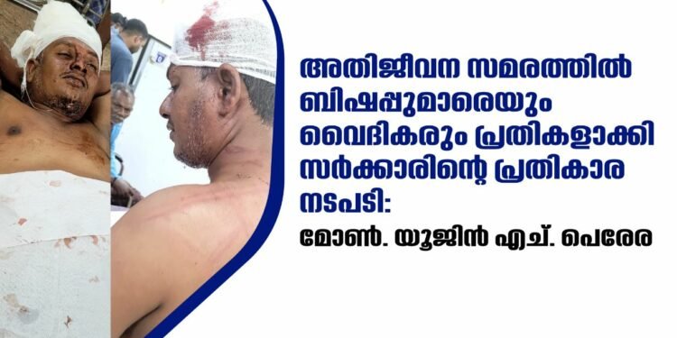 വിഴിഞ്ഞം സമരത്തിൽ അഭിവന്ദ്യ പിതാക്കന്മാരെയും വൈദികരെയും മത്സ്യത്തൊഴിലാളികളെയും കള്ളക്കേസിൽ കുടുക്കി അതിജീവന സമരത്തെ അടിച്ചമർത്താൻ സർക്കാർ നീക്കമെന്ന് മോൺ. യൂജിൻ എച്. പെരേര. ആർച്ച് ബിഷപ്പ് ഡോ. തോമസ് ജെ. നെറ്റോയെ ഒന്നാം പ്രതിയാക്കിയും സഹായ മെത്രാൻ ഡോ. ക്രിസ്തുദാസ് ആർ -നെ രണ്ടാം പ്രതിയാക്കിയുമാണ് പോലീസിന്റെ എഫ്.ഐ. ആർ. പുറത്തിറക്കിയിരിക്കുന്നത്. ഇന്നലെ സമരസ്ഥലത്ത് ഉണ്ടായ സംഘർഷത്തെ തുടർന്ന് തെറ്റായ വാർത്തകൾ മാധ്യമങ്ങൾ പ്രചരിപ്പിച്ചതോടെ സമൂഹത്തിനുമുന്നിൽ അതിജീവന സമരം ചെയ്യുന്നവരെ കുറ്റക്കാരായി പഴി ചുമത്താനാണ് സർക്കാർ നീക്കം.