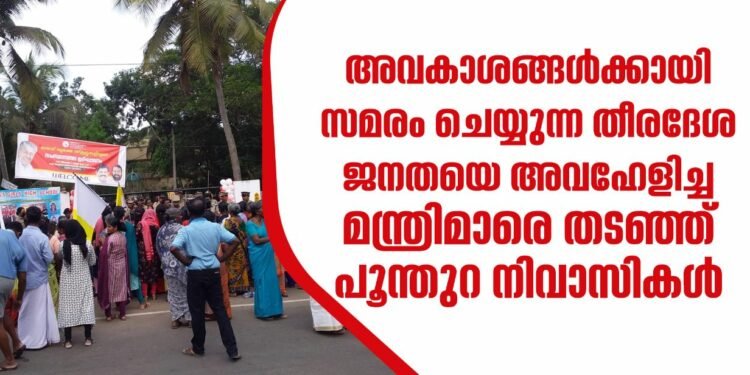 പൂന്തുറ സെന്റ് ഫിലോമിനാസ് സ്കൂളിൽ ഇന്ന് റോഡ് സുരക്ഷ സ്കൂളുകളിലൂടെ എന്ന ക്യാമ്പയിന്റെ സംസ്ഥാനതല ഉത്ഘാടനത്തിൽ പങ്കെടുക്കേണ്ടിയിരുന്ന മന്ത്രിമാരെ തടഞ്ഞ് പൂന്തുറയിലെ ജനങ്ങൾ. കഴിഞ്ഞദിവസം തീരദേശ ജനത തീവ്രവാദികളാണെന്ന് വി. ശിവൻ കുട്ടി പറഞ്ഞ പ്രസ്ഥാവനയെ ചൂണ്ടിക്കാട്ടിക്കൊണ്ടാണ് പൂന്തുറയിലെ വനിതകൾ വിദ്യാലയത്തിന് മുന്നിൽ പ്രതിഷേധിച്ചത്.