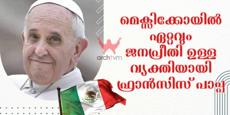 മെക്സിക്കോയിൽ ഏറ്റവും ജനപ്രീതിയുള്ള വ്യക്തിയായി മാറിയിരിക്കുകയാണ് ഫ്രാൻസിസ് പാപ്പ. ബോക്സർ സാൽ കനേലോ അൽവാരസ്, ഫുട്ബോൾ കളിക്കാരായ ലയണൽ മെസ്സി, ക്രിസ്ത്യാനോ റൊണാൾഡോ, ഫോർമുല 1 താരം സെർജിയോ “ചെക്കോ” പെരെസിനെയും മറികടന്ന് മെക്സിക്കോയിലെ ഏറ്റവും ജനപ്രിയനായ വ്യക്തിയായി ഫ്രാൻസിസ് പാപ്പ.