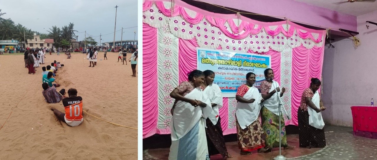കരുംകുളം: മത്സ്യത്തൊഴിലാളി ദിനത്തോടനുബന്ധിച്ച് പുല്ലുവിള ഫൊറോന ഫഷറീസ് മിനിസ്ട്രി വിവിധ മത്സരങ്ങൾ നടത്തി. നവംബർ 8 ശനിയാഴ്ച കരുംകുളം സഹൃദ് ഹാളിൽ നടന്ന പരിപാടി ഫാ. ജോയി ഉദ്ഘാടനം ചെയ്തു. തുടർന്ന് കടൽ പാട്ട് മത്സരവും അതോടൊപ്പം കടലിൽ നീന്തൽ മത്സരവും തീരത്ത് വനിതകൾക്കും പുരുഷന്മാർക്കും വടം വലി മത്സരവും നടന്നു. 9 ഇടവകകളിൽ നിന്നും മത്സ്യമേഖലയുമായി ബന്ധമുള്ള സ്ത്രീ പുരുഷ പങ്കാളിത്തം ദിനാചരണം അർഥവത്താക്കി. വിജയികൾക്കുള്ള സമ്മാനങ്ങൾ നവംബർ 15-ന് പുല്ലുവിള ഫൊറോനയിൽ നടക്കുന്ന മത്സ്യത്തൊഴിലാളി ദിനാഘോഷ ചടങ്ങിൽ വിതരണം ചെയ്യും. റ്റി.എം.എഫ് ഭാരവാഹിയായ ജോയി സ്വാഗതവും ഫൊറോന ആനിമേറ്റർ സോണിയ കൃതജ്ഞതയും പറഞ്ഞു.