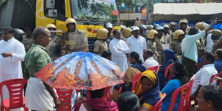 വിഴിഞ്ഞം അതിജീവന സമരം നടക്കുന്ന സമരപ്പന്തൽ പൊളിച്ചു നീക്കാൻ ശ്രമം. ജനകീയ സമരം എന്ന പേരിൽ സമരം ചെയ്യുന്നവർ അതിജീവന സമരപന്തലിലേക്ക് എത്തിയവരെ വഴിയിൽ തടയുകയും സംഘർഷാവസ്ഥ സൃഷ്ടിക്കുകയും ചെയ്തു. തുറമുഖ കവാടത്തിൽ സ്ഥാപിച്ചിരിക്കുന്ന സമരപ്പന്തൽ പൊളിച്ച് നീക്കാനാണ് ശ്രമം നടന്നത്. അതിജീവന സമരത്തിനായെത്തിയവർക്കും പോലീസിനും നേരെ കല്ലേറു നടന്നു. നിർമ്മാണ സാമഗ്രികളുമായി തുറമുഖത്തിന്റെ നിർമ്മാണം ഈ സമരത്തിനിടയിൽ പുനരാരംഭിക്കുവാൻ ശ്രമിച്ചവരെ തടഞ്ഞതോടെയാണ് സമര സ്ഥലത്ത് സംഘർഷവസ്ഥ രൂപപ്പെട്ടത്.