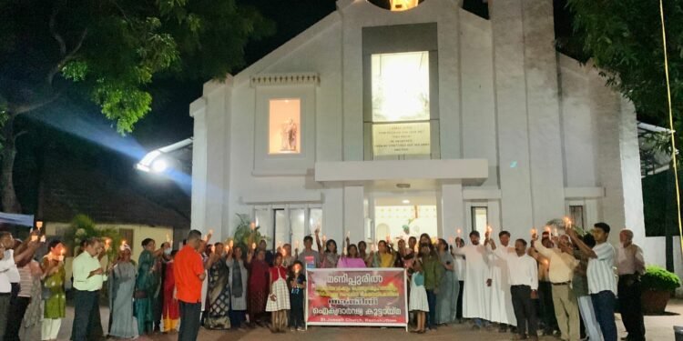മണിപ്പൂരിലെ ജനങ്ങളോട് ഐക്യദാർഢ്യം പ്രകടിപ്പിച്ച് മെഴുകുതിരികളുമായി റാലി നടത്തി കഴക്കൂട്ടം സെൻറ് ജോസഫ് ഇടവക. മണിപ്പൂരിലെ ഇനിയും അവസാനിക്കാത്ത കലാപത്തിലും വംശീയ ഉന്മൂലനത്തിനും വേദനയും നടുക്കവും മാറാത്ത അവിടുത്തെ ജനങ്ങളോടും സഭാംഗങ്ങളോടും ഐക്യദാർഢ്യം പ്രകടിപ്പിച്ചുകൊണ്ടാണ് കഴക്കൂട്ടം ഇടവക ഇന്നലെ മെഴുകുതിരികളുമായി റാലി നടത്തിയത്.