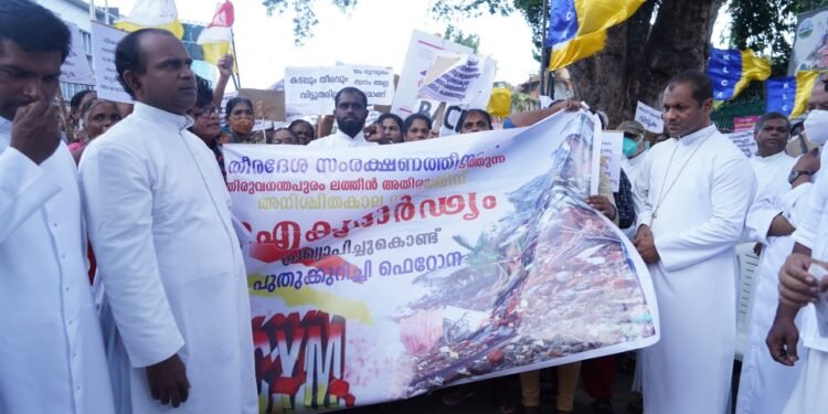 തിരുവനന്തപുരം അതിരൂപതയിലെ തീരദേശ ജനതയുടെ അവകാശ പോരാട്ടം അഞ്ചാം ദിവസത്തിലേക്ക്. സർക്കാർ സംവിധാനങ്ങളും, പൊതു സമൂഹവും പ്രതികരിക്കുന്നില്ല എങ്കിലും അവകാശങ്ങൾ നേടുന്നവരെയും പോരാട്ടം തുടരാനാണ് തീരുമാനം. സമരത്തിന്റെ അഞ്ചാം ദിവസമായ ഇന്ന് പാളയം രക്തസാക്ഷി മണ്ഡപത്തിൽ നിന്ന് ആരംഭിച്ച മാർച്ചിനും സെക്രട്ടറിയേറ്റിനു മുന്നിലുള്ള ധർണയ്ക്കും നേതൃത്വം നൽകിയത് പുതുക്കുറിച്ചി ഫെറോനയിലെ ഇടവകാംഗങ്ങളും വൈദികരുമാണ്.കടലിരമ്പും പോലെ ഈ സമരം വൈകാതെ തന്നെ തുറമുഖ നിർമ്മാണം പുരോഗമിക്കുന്നിടത്തേക്ക് എത്തുമെന്ന് വികാരി ജനറൽ മോൺ. യൂജിൻ എച്ച് പെരേര പറഞ്ഞു.