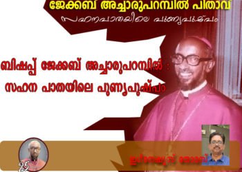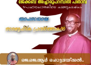 - ജെ.ജെ.ആർ ചെറുവയ്ക്കൽ..പൂവിന്റെ മനോഹാരിതയും സുഗന്ധവുമെന്നപോലെ ക്രൈസ്തവ സന്യാസത്തോടുള്ള ആഴമായ പ്രണയവും പാവങ്ങളോടുള്ള അകമഴിഞ്ഞ സ്നേഹവുമാണ് ഭാഗ്യസ്മരണാർഹനായ ജേക്കബ് അച്ചാരുപറമ്പിൽ പിതാവിനെ വ്യത്യസ്തനാക്കുന്നത്. താനെന്തിനാണ് വൈദികനാകുന്നത് എന്ന് ...