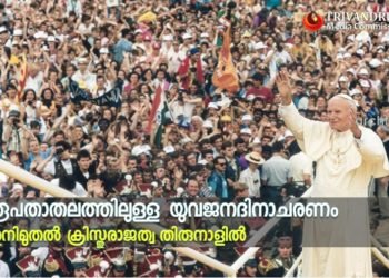 യുറോപ്പിലും മറ്റു വിവിധ രാജ്യങ്ങളിലും ഓശാന ഞായര് ദിനത്തില് ആചരിച്ചുപോരുന്ന രൂപതാ തലത്തിലുള്ള യുവജനദിനം ആണ്ടുവട്ടത്തിലെ അവസാന ഞായറാഴ്ചയായ ക്രിസ്തുരാജത്വ തിരുനാളിൽ ആചരിക്കണമെന്ന് ഫ്രാൻസിസ് പാപ്പ ആഹ്വാനംചെയ്തു. ...
