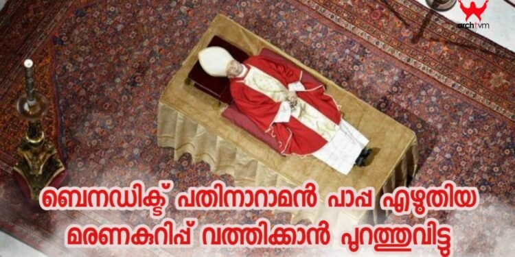 ഡിസംബർ 31 ന് ബെനഡിക്ട് പതിനാറാമൻ പാപ്പയുടെ മരണാനന്തരം അദ്ദേഹം 2006 ഓഗസ്ററ് 29 ന് എഴുതിയ മരണകുറിപ്പ് വത്തിക്കാൻ പുറത്തുവിട്ടു. ക്രൈസ്തവ ജീവിതത്തിന്റെ കേന്ദ്രമായ ക്രിസ്തുവിലാണ് ബെനഡിക്ട് പതിനാറാമൻ പാപ്പയുടെ മരണപത്രികയുടെ മുഴുവൻ അന്തസത്തയും ഉൾക്കൊള്ളുന്നത്. ഓരോ പാപ്പമാരും ഒരു മരണപത്രിക മുൻകൂട്ടി എഴുതി വയ്ക്കുന്ന പതിവുണ്ട്. ഈ പത്രിക പ്രത്യേകമായും അവരുടെ മരണശേഷം മാത്രം പുറത്തുവിടാൻ അനുവാദമുള്ളവയാണ്.
