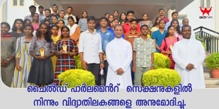 അതിരൂപത സാമൂഹ്യ ശുശ്രൂഷ സമിതിയുടെ കാരുണ്യപൂർവ്വം വിഭാഗം ചൈൽഡ് പാർലമെൻറ് സെക്ഷനുകളിൽ നിന്നും വിദ്യാതിലകങ്ങളെ അനുമോദിച്ചു. എസ് എസ് എൽ സി, പ്ലസ് ടു ക്ലാസുകളിൽ ഉന്നത വിജയം നേടിയ കുട്ടികൾക്ക് അതിരൂപത സഹായ മെത്രാൻ ക്രിസ്തുദാസ് ആർ. മൊമന്റോ നൽകിയാണ് അനുമോദിച്ചത്.